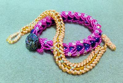 If you’ve never done the flat spiral bead weaving, I hope you’ll find this interesting and fun. You’ll learn how to make the flat spiral in a video, and then you’ll see more information on how I made these two bracelets.